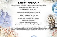 Всероссийский конкурс детско-юношеского творчества «Животные в зимнем лесу» 17.03.2022