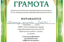 11 марта объединение "Вокальный ансамбль "ДоРеMix"" (педагог - Гильманова А.Ф.) приняло участие в школьном фестивале английской песни "Different but together", который проходил на базе школы №129. Поздравляем и желаем дальнейших творческих успехов.