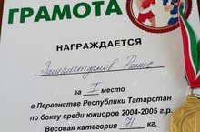 Воспитанник объединения «Бокс-Патриот» Замалетдинов Ранис завоевал 1 место в Первенстве Республики Татарстан по боксу среди юниоров 2004-2005 г.р. 9 марта 2022г.