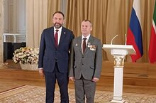 Сегодня на заседании в Казанском кремле, А. В. Песошин вручил медаль "За доблестных труд", зав.отдела гражданско - патриотического воспитания ЦДТ "Олимп" Р. Р. Хабибуллину.