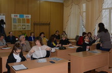 Сегодня в школе прошел республиканский семинар, посвященный реализации проектной деятельности по предмету "Технология". На семинаре выступила Соловьёва З.Н., учитель технологии 1 квалификационной категории, с мастер- классом по теме "Оказание первой помощи при кровотечениях". Учитель географии и обществознания Чернийчук В.М. и учитель математики Зобнина Н.Б. показали интегрированное внеклассное мероприятие по теме "Профориентация как средство социальной адаптации старших классов на рынке труда".