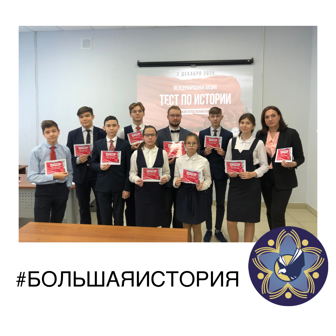Опубликовано: 03.12.20203 декабря состоялась международная акция "Тест по истории Великой Отечественной Войны". Акция проводится с 2015 года в рамках федерального проекта Молодежного парламента "Большая история". Тест проводится с целью оценки уровня исторической грамотности граждан Российской Федерации, соотечественников, проживающих за рубежом, иностранных граждан о Великой Отечественной войне, привлечения внимания к получению знаний о Великой Отечественной войне. Основными задачами теста являются популяризация военного и гражданского подвига, ведущей роли советского народа в победе во Второй Мировой войне, мотивация граждан к изучению истории Великой Отечественной войны.