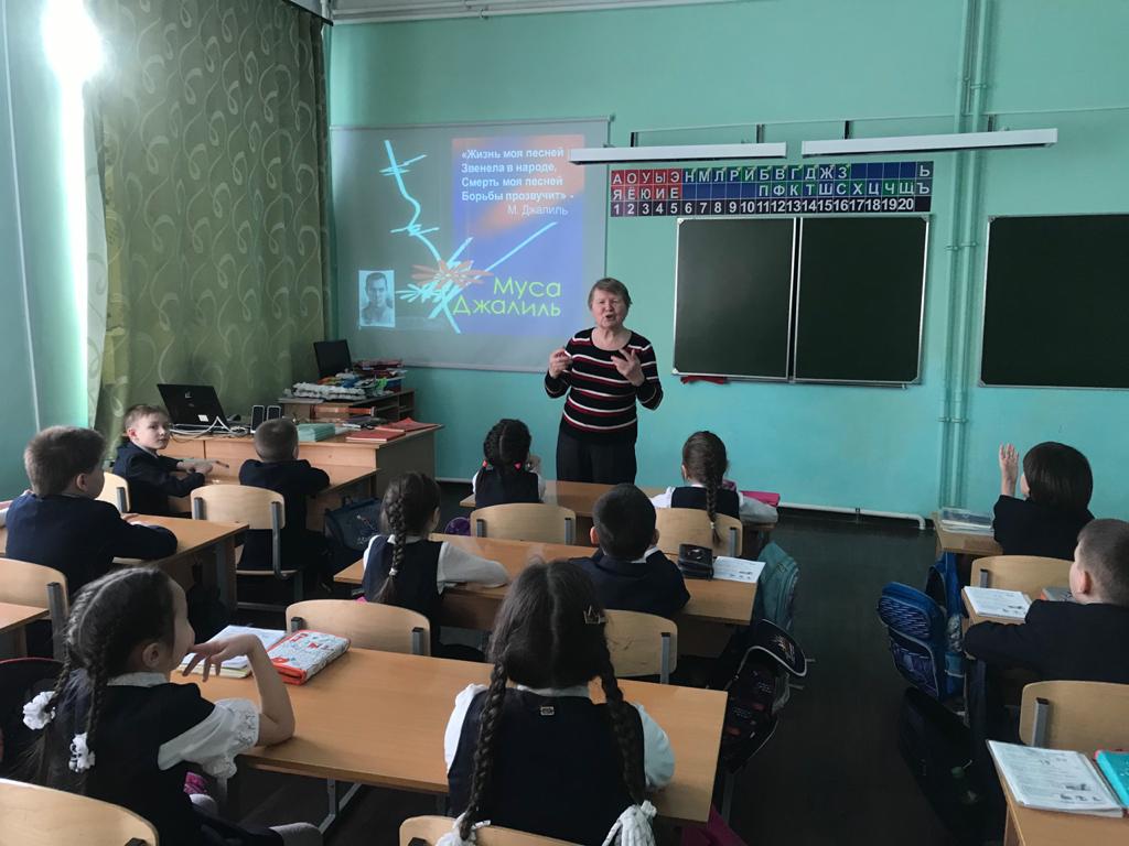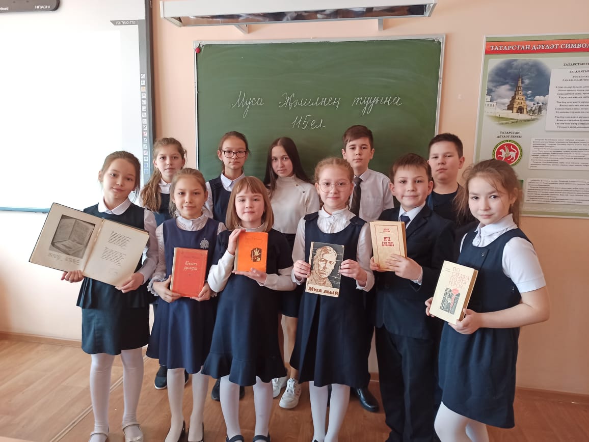 Опубликовано: 15.02.2021В рамках мероприятий, посвященных 115-летию со дня рождения поэта, Героя Советского Союза Мусы Джалиля в нашей школе прошли классные часы, на которых классные руководители рассказывали учащимся о непростой биографии поэта, о его творчестве , просматривались и обсуждались документальные фильмы о поэте-герое и его знаменитой. В библиотеке школы была организована рубрика " Литературный факт" и выставка книг Мусы Джалиля.