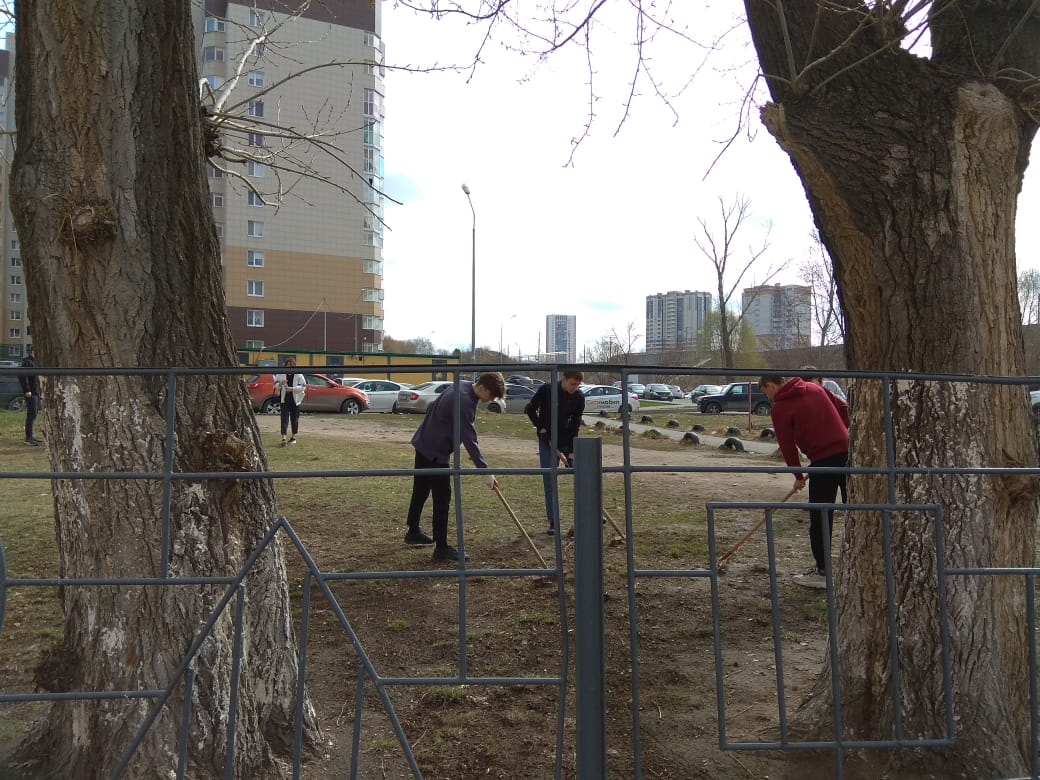 Была проведена большая работа по уборке мусора. Все дружно взялись за работу и быстро навели порядок во дворе, на спортивной площадке.
