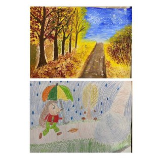 Среди работ зарисовки молодой осени, пейзажи, натюрморты с осенними букетами, листопады и работы с разными красками осени.