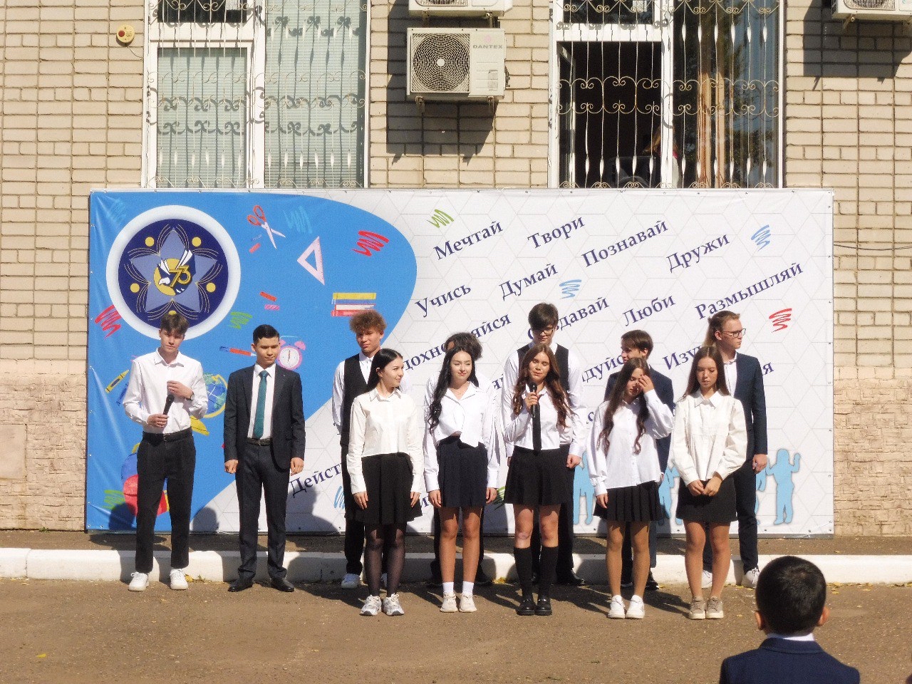 Опубликовано: 01.09.2023Директор школы Инна Алимбековна поздравила учащихся, родителей и педагогов школы с новым учебным годом : «Пусть новый учебный год станет для всех ярким и плодотворным, пусть он будет наполнен новыми открытиями, творческими свершениями и победами, интересным и полезным общением, духовно и интеллектуально обогатит и ребят, и их педагогов»