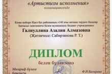 Диплом в номинации "Артистизм исполнения" за участие в конкурсе приуроченный ко дню рождения Г.Тукая 24.04.2025