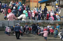 Сегодня в нашем детском саду была проведена тренировочная эвакуация, дети а также все сотрудники по сигналу, были эвакуированы из здания в течении 7 минут