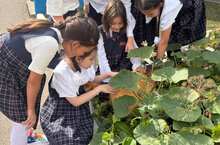 Пока ученики отдыхали на каникулах, воспитанники детского сада ухаживали за огородом и вырастили отличный урожай. Вот какая красавица тыква у нас уродилась! Еще бы фею, чтобы превратить ее в карету.