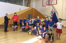 За активное участие в соревнованиях по баскетболу «КЭС-Баскет», проходивших в 2021-2022 учебном году, тренеру по баскетболу- учителю физкультуры Фанзилю Маратовичу и его команде воспитанников школьного спортивного клуба «Перспектива» в торжественной обстановке были вручены баскетбольные мячи.