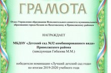 Нашему детскому саду были вручены грамоты - победитель номинации "Лучший детский сад года по итогам 2019-2020 года" и грамота - 2 место в районном этапе городского смотра-конкурса на лучшую игроваю площадку ДОУ.