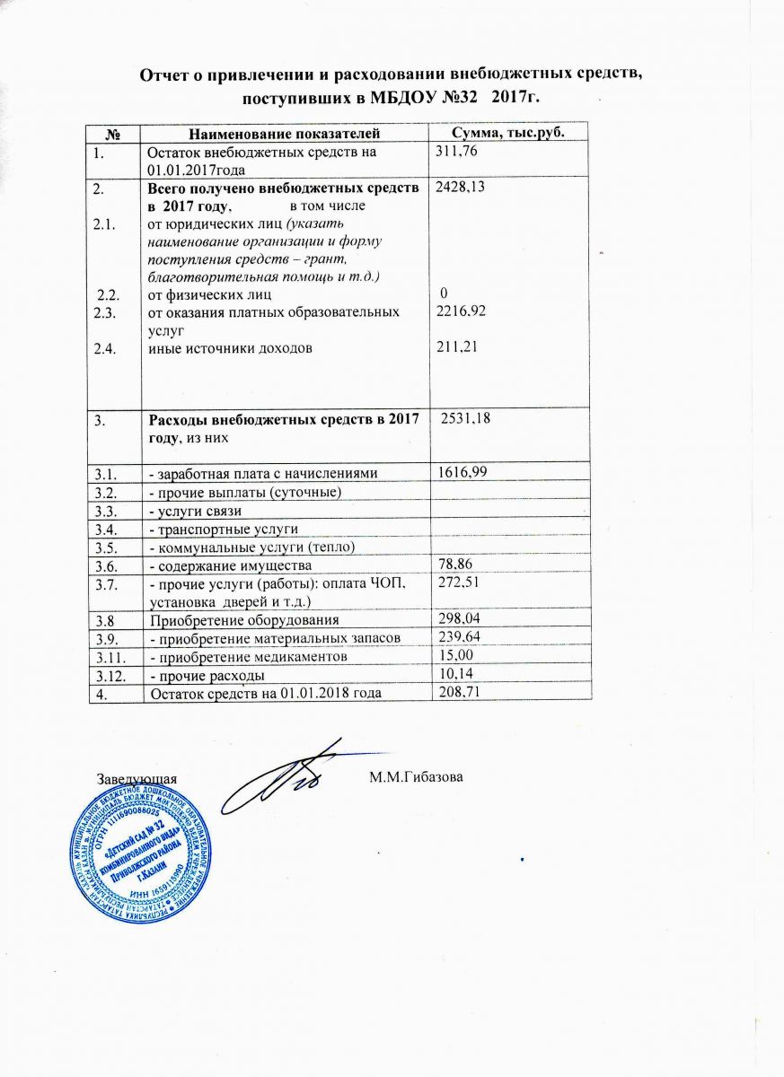 Отчет о привлечении и расходовании внебюджетных средств за 2017 год