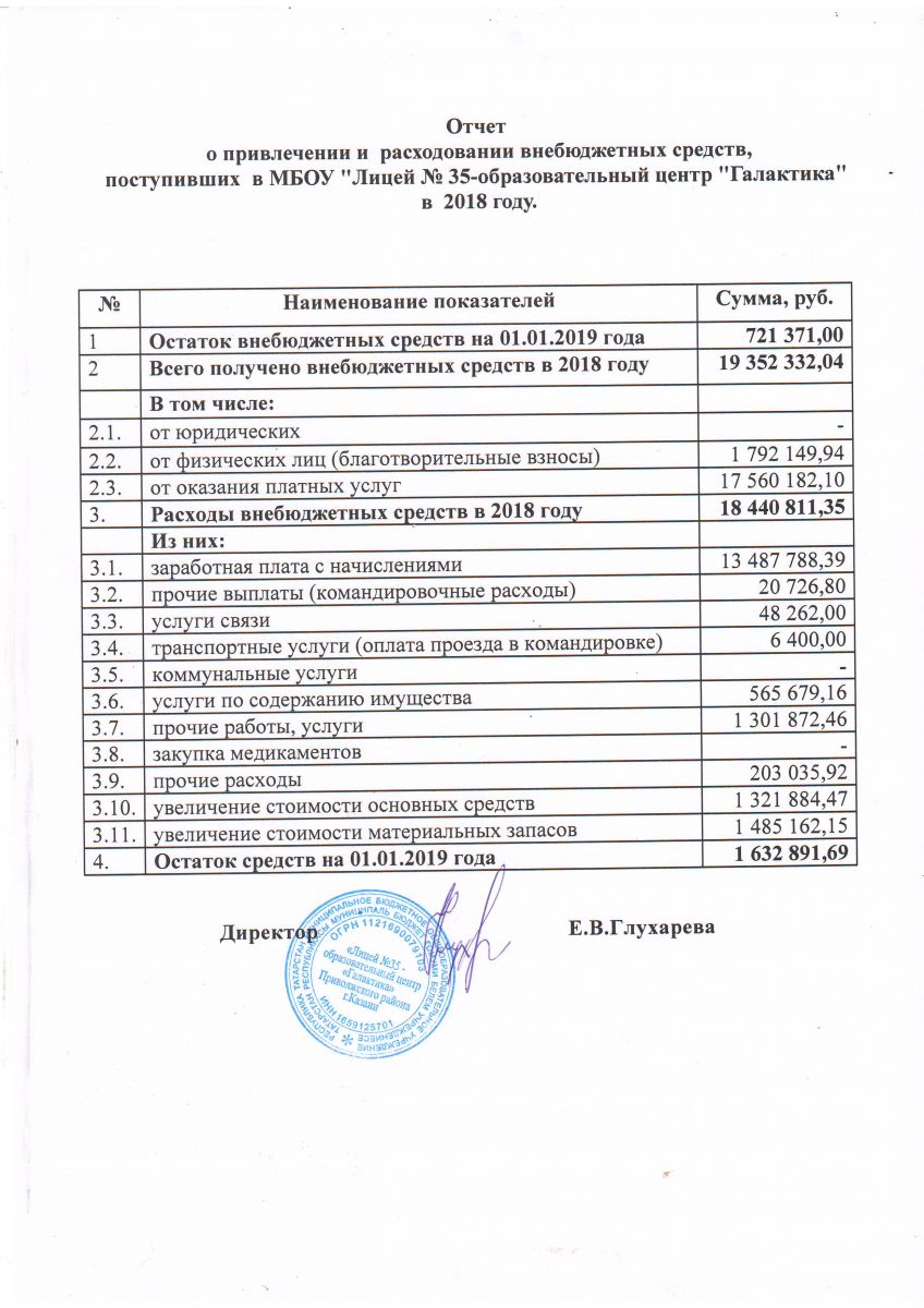 Отчет о привлечении и расходовании внебюджетных средств в 2018 году