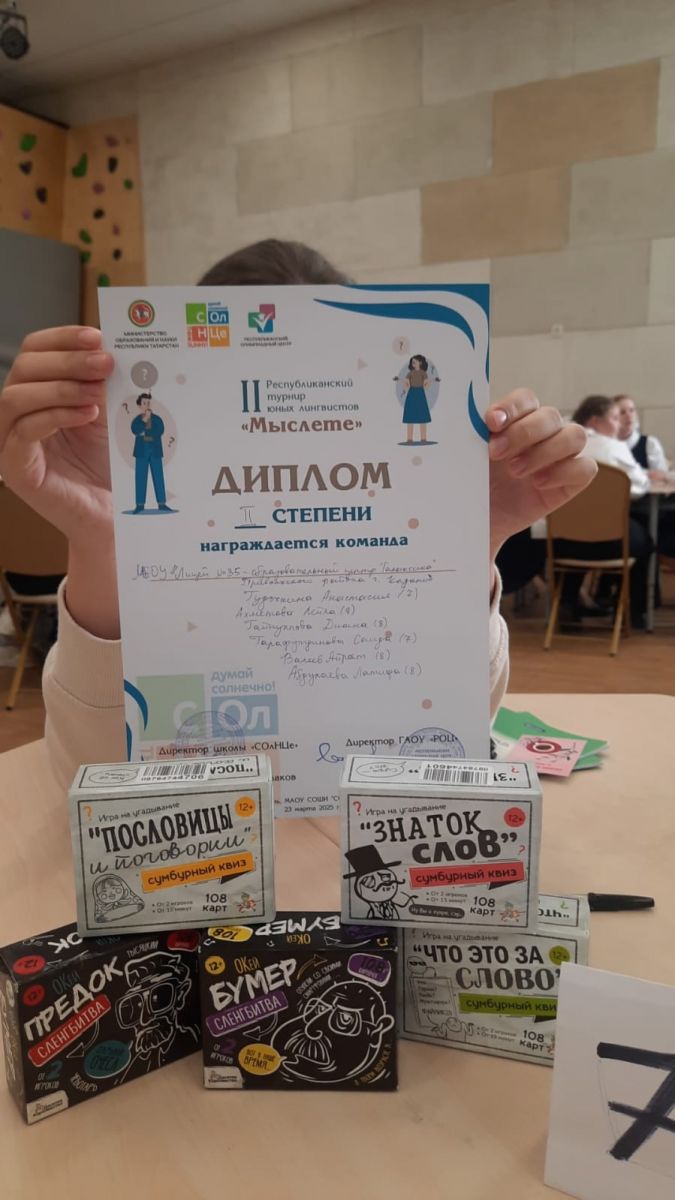 Команда учеников 7-8 классов заняли почётное 2 место Спасибо учителям русского языка и литературы: Чернышевой Ольге Александровне, Зуевой Ольге Юрьевне, Арслановой Альбине Альбертовне, Кныш Виктории Леонидовне за подготовку наших талантливых и одарённых ребят! Молодцы ребята и их педагоги!