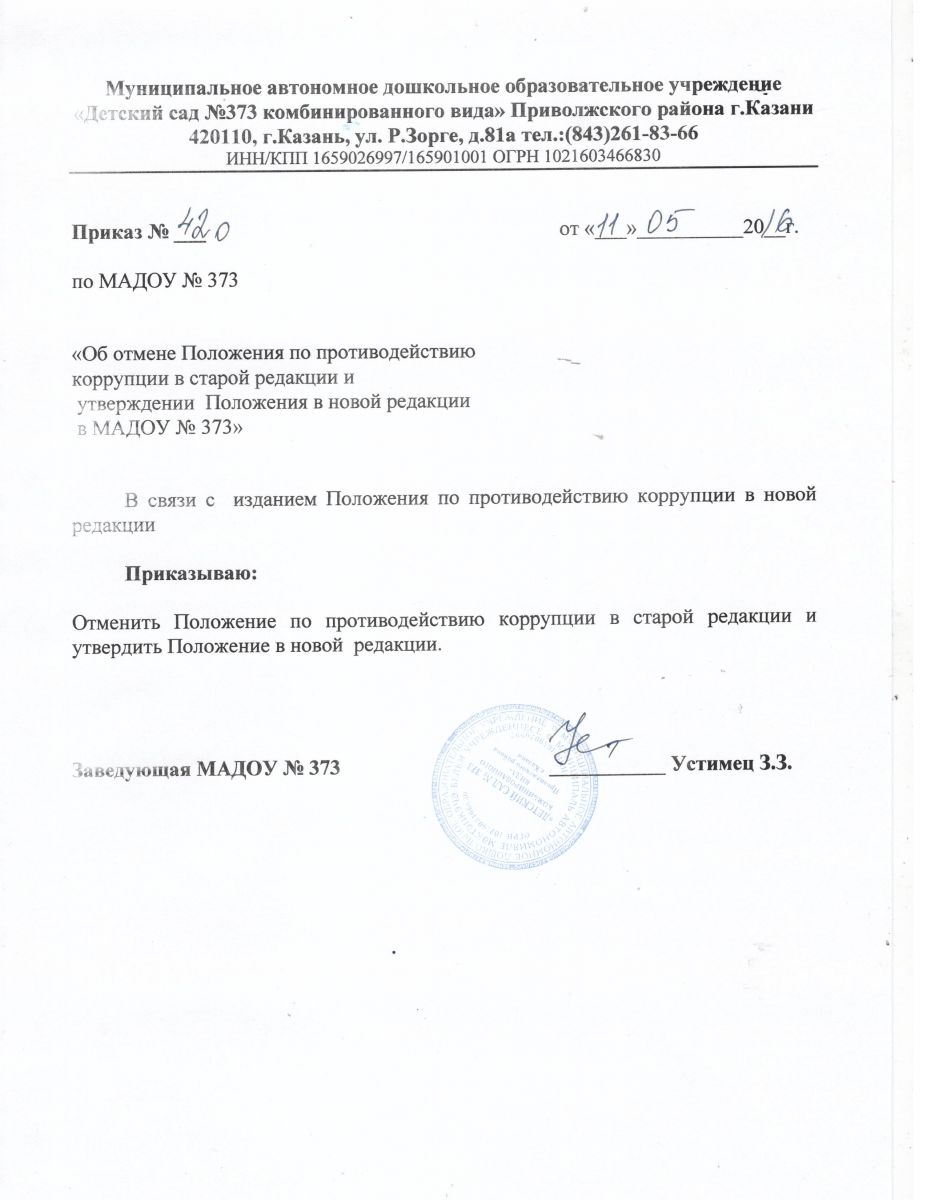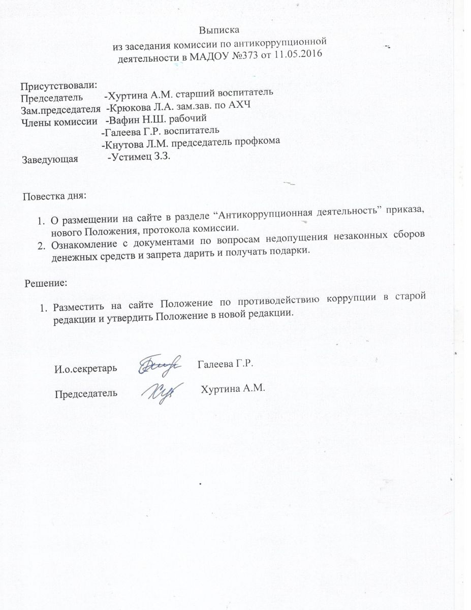 План мероприятий по противодействию коррупции в МАДОУ "Детский сад №373" на 2015-2016 учебный год