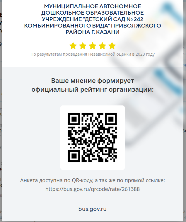 Муниципальное автономное дошкольное образовательное учреждение "Детский сад № 242 комбинированного вида" Приволжского района г.Казани / Казан шәһәре Идел Буе районының "Катнаш төрдәге 242 нче балалар бакчасы" муниципаль автоном мәктәпкәчә белем бирү учреждениесе
