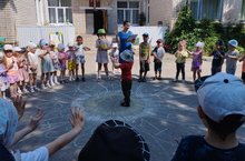 В жаркий день к нам в гости пришли Нептун и Русалочка. Веселые игры, забавы с водой, танцы и песни очень порадовали наших детей.