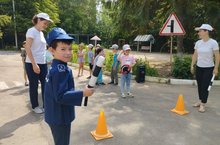 Ребята вспомнили о дорожной безопасности при движении на велосипедах, самокатах, а также повторили дорожные знаки и правила.