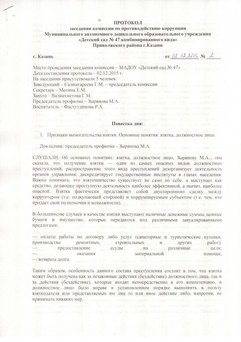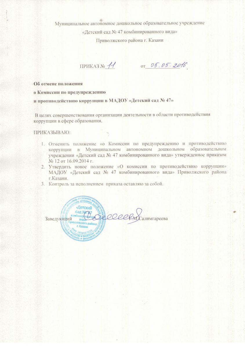 приказ по коррупции по МАДОУ "Детский сад № 47"
