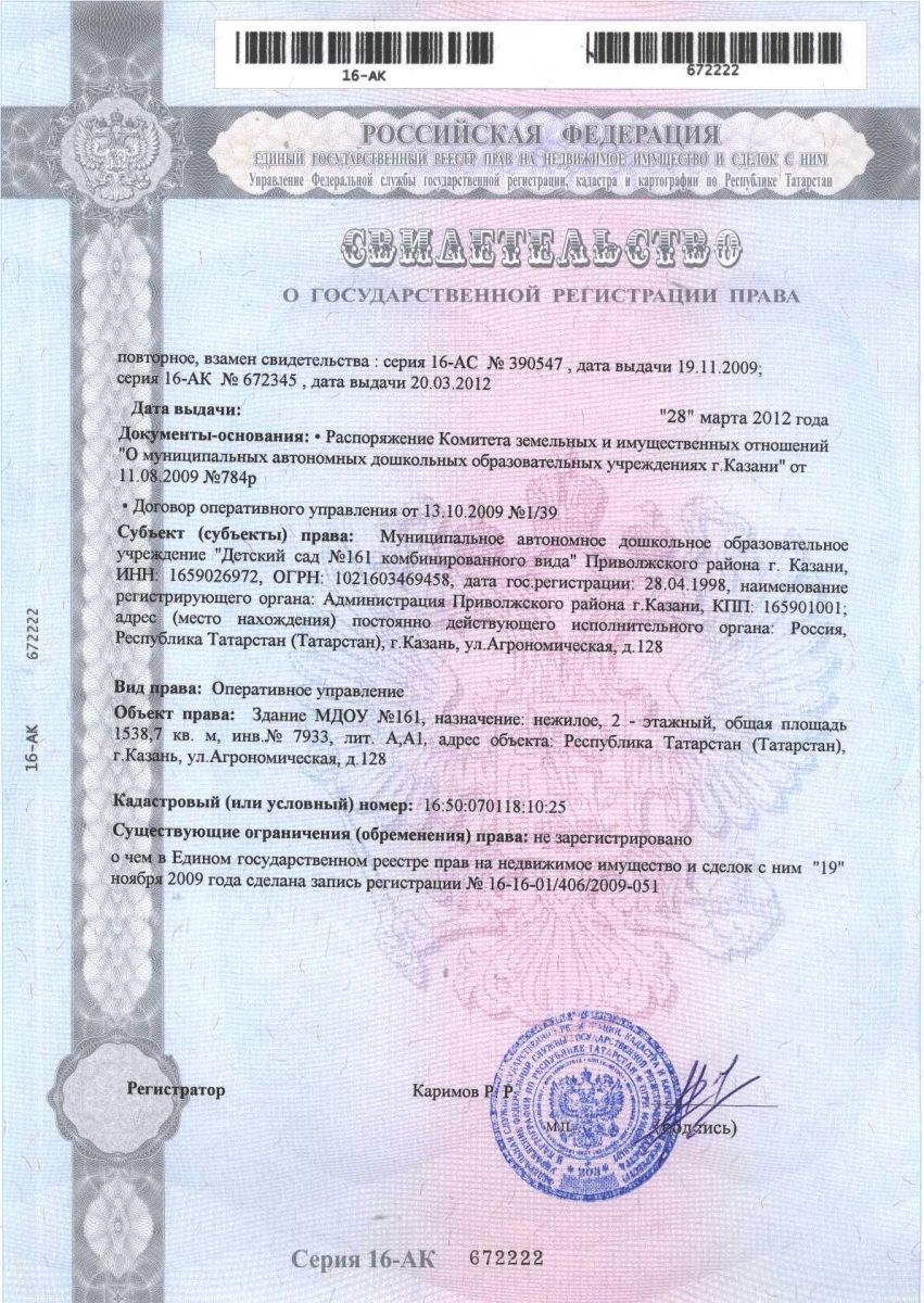 свидетельство о гос регистрации права на здание ДОУ по Агрономической 128 от 19.11.2009года .jpg