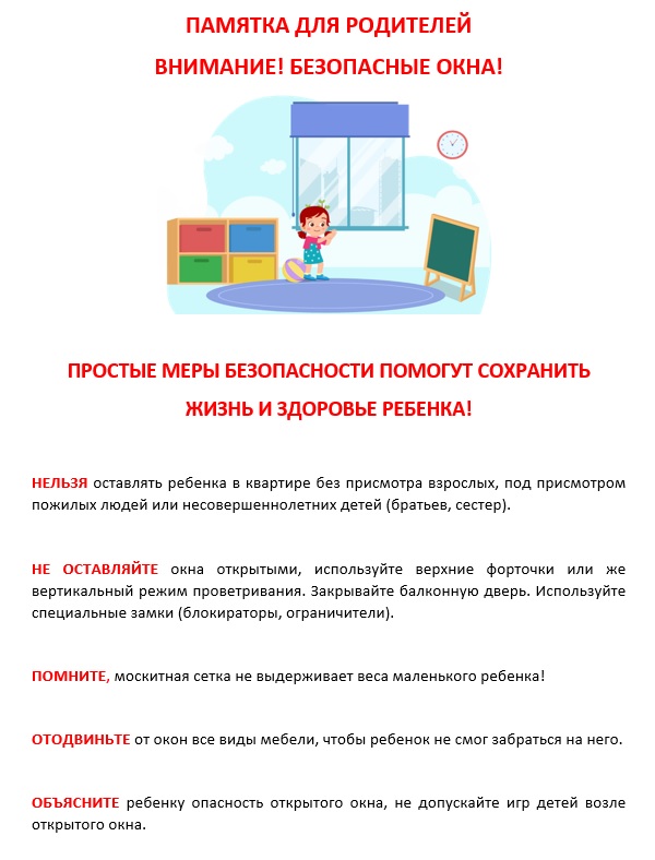 Памятка для родителей. Внимание! Безопасные окна! 09.07.2021