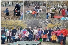 В детском саду большое внимание уделяется трудовому воспитанию детей. В эти тёплые октябрьские дни в детском саду был проведен "День труда и отдыха". Дети вместе с мамами и папами убирали листву и сухие ветки на участках. Ребята и родители играли весёлые, подвижные игры.