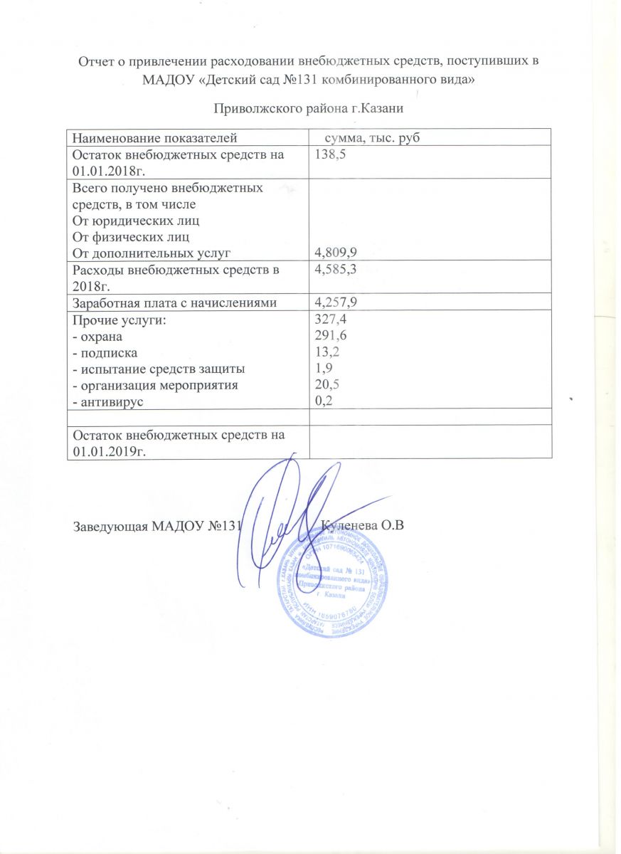 отчет о привлечении и расходовании средств по МАДОУ 131 за 2018г.