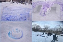 Воспитатель старшей группы Тиунова Ксения Константиновна организовала родителей для создания развивающей среды в зимний период. Педагог совместно с родителями в выходной день создали "Снежный городок". Дети были в восторге от городка, где можно лазить, метать, бегать по лабиринту.