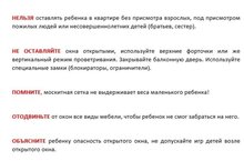 - Никогда не держите окна открытыми, если дома ребёнок! Вам кажется, что Вы рядом, но секунда, на которую Вы отвлечетесь, может стать последней в жизни Вашего ребёнка!
