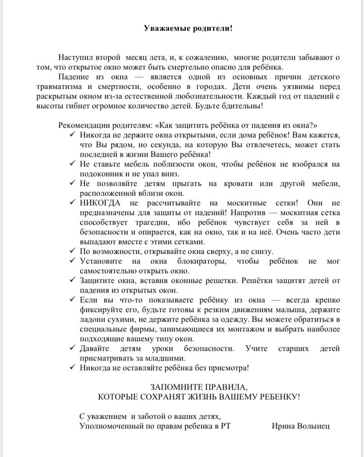 Памятка для родителей. Осторожно, открытое окно! 05.07.2021