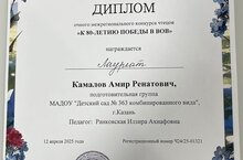 Поздравляем воспитанника подготовительной группы №3 Камалова Амира за участие в очном межрегиональном конкурсе чтецов "К 80-летию Победы в ВОВ".