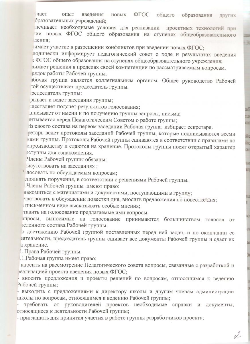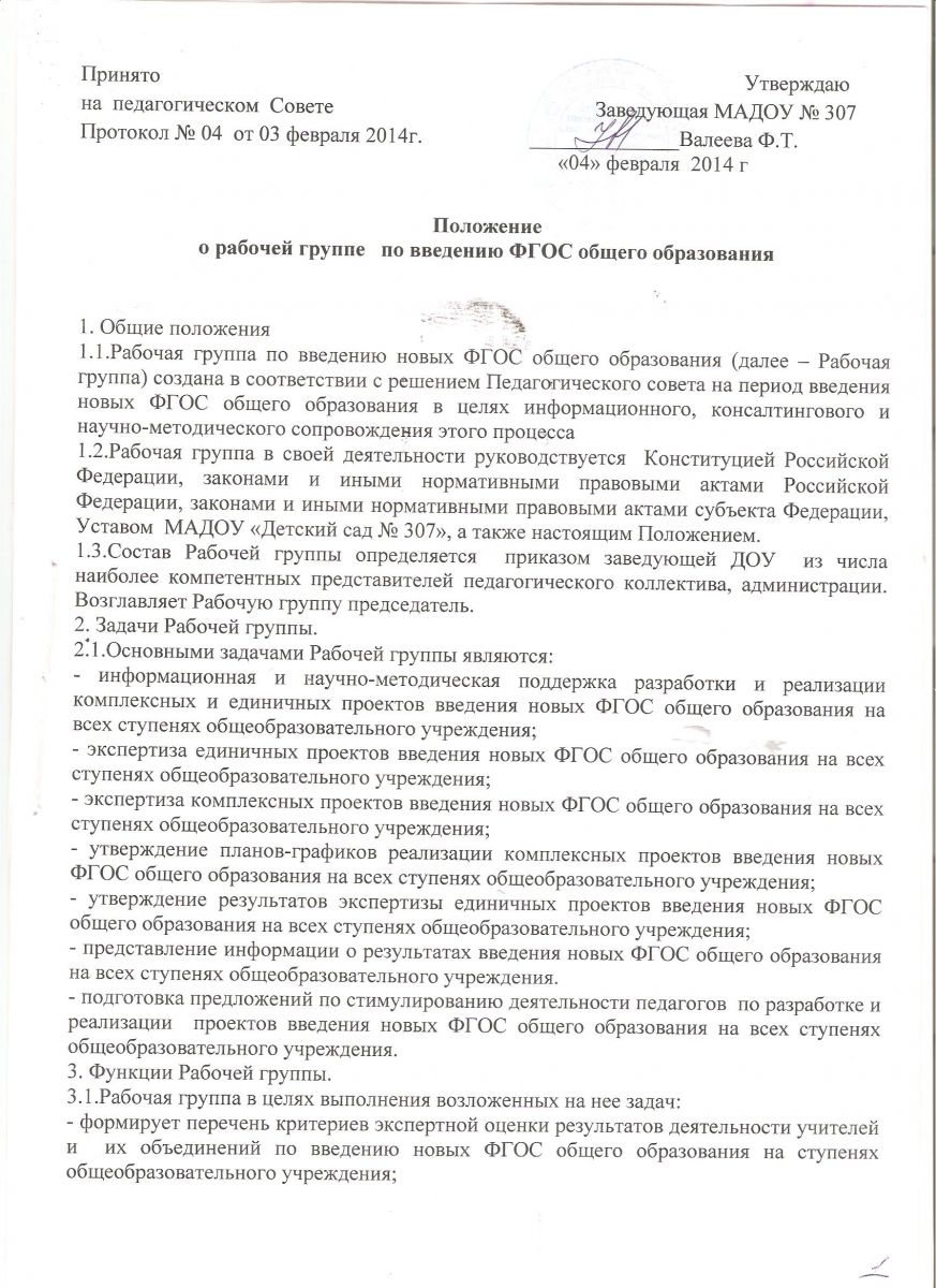 Положение о рабочей группе по введению ФГОС