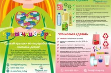 В нашем детском саду стартует благотворительная акция "Крышечки добра". Мы организуем сбор крышечек от пластиковых бутылок и упаковок тетрапак, а также других крышечек. Все вырученные с переработки крышечек денежные средства идут на оплату реабилитационного лечения детей-инвалидов, подопечных фонда "Первый шаг".Емкость для крышечек размещена в холле детского сада.