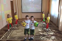 В преддверии Чемпионата мира по футболу воспитанники старших и подготовительных групп нашего детского сада подготовили яркий спортивно-музыкальный номер на песню из репертура группы "Волшебники двора" под названием "Гол! Гол! Гол! Все на футбол!".