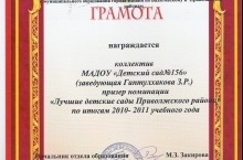 МАДОУ № 156- призер номинации " Лучшие детские сады Приволжского района" 31.08.2011