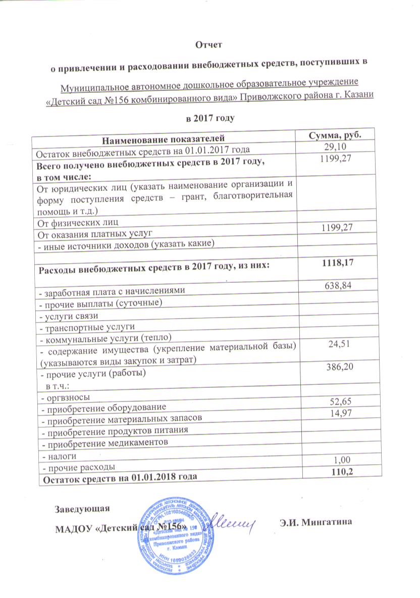 Отчет о привлечении и расходовании внебюджетных средств 2017 год.
