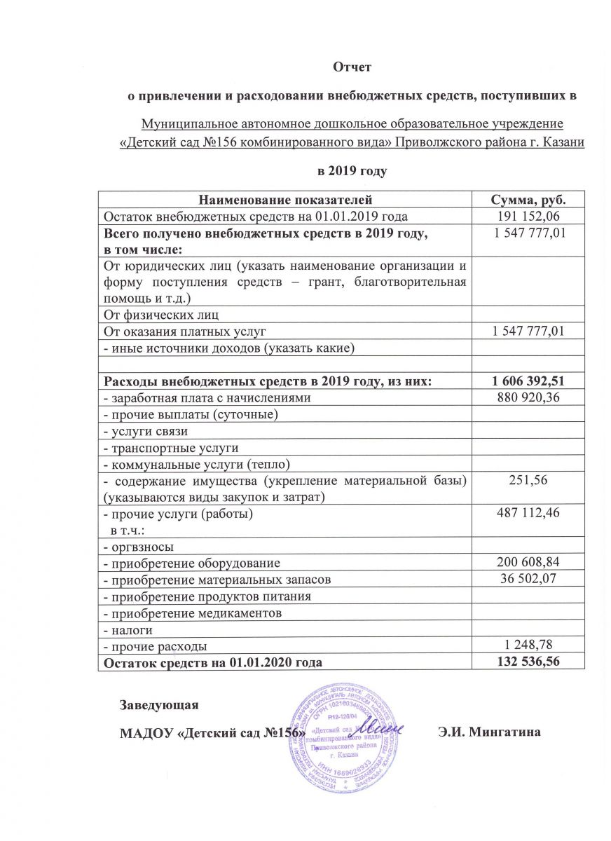 Отчет о привлечении и расходовании внебюджетных средств в 2024 году МАДОУ № 156.pdf
