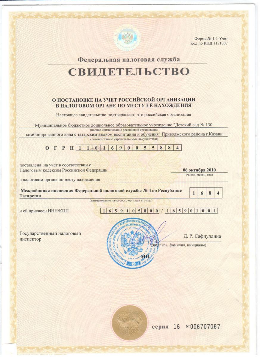 Свидетельство о постановке на учет в налоговом органе