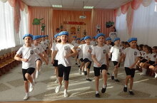 Сегодня у нас в саду прошел смотр строя и песни среди воспитанников старших и подготовительных групп. Ребята промаршировали под строевую песню, а потом посоревновались в спортивных эстафетах!