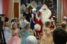 К ребятам пришли Дед Мороз и Снегурочка, а также сказочные гости из разных сказок.