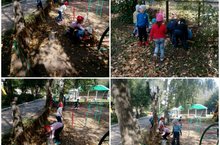 Уборка участка с детьми старшей и подготовительной группы от сухих веток, листьев деревьев и кустов. -