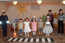 Воспитанники детского сада совместно с воспитателями готовятся к районному конкурсу агитбригад по ПДД.