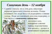 Экологический праздник 12 ноября – Синичкин день - появился в России несколько лет тому назад. С инициативой о его учреждении выступили представители Союза охраны птиц России. Установили конкретную дату – 12 ноября. Но данный шаг не был случайностью. У славян существует поверье, согласно которому именно к 12 ноября к жилью человека прилетают зимующие пернатые типа свиристелей и соек. Среди них обязательно присутствуют и желтогрудые синицы. Объясняется такое поведение птиц очень просто: пернатые понимают, что люди в зимние холода способны пожалеть «братьев своих меньших» и подкормить их. А если не пожелают проявить сочувствие, сострадание, милосердие, около домов, во дворах все равно посчастливится птичкам найти что-нибудь съедобное.В рамках Дня встречи зимующих птиц "12 ноября - Синичкин день" в ДОУ воспитателями были проведены с детьми беседы о празднике. Дети пополнили знания о том, где живут эти птицы, чем они питаются, какую пользу приносят. Ребята рисовали синичек, пели песни, читали стихи, играли в подвижные и дидактические игры, разыгрывали инсценировки.Россиядә тагын бер экологик бәйрәм барлыкка килде – Песнәкләр көне. Ул кошларны яклау союзы инициативасы белән булдырылды һәм 12 ноябрь көнендә билгеләп үтелә. Бу көн шулай ук кышлаучы кошларны каршы алу көне буларак та билгеле. Билгеле, безнең балалар да бәйрәмнән читтә калмадылар. “Песнәкләр көне” уңаеннан, “Кошларга ярдәм итик!” дигән чара узды. Балалар песнәкләр һәм бездә кышлаучы башка кошлар турында бик күп кызыклы мәгълүматлар белделәр, песнәкләр рәсемнәре ясадылар, кул эшләре ясадылар. Аннан соң кошлар өчен җимлекләрнең төрләре күрсәтелде. Кошларны җимлекләр белән сыйладылар. -