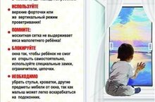 -НЕЛЬЗЯ оставлять ребенка в квартире без присмотра взрослых, под присмотром пожилых людей или несовершеннолетних детей (братьев,сестер).-НЕ ОСТАВЛЯЙТЕ окна открытыми, используйте верхние форточки или же вертикальный режим проветривания.-Закрывайте балконную дверь. Используйте специальные замки (блокираторы, ограничители).-ПОМНИТЕ, москитная сетка не выдерживает веса маленького ребенка!-ОТОДВИНЬТЕ от окон все виды мебели, чтобы ребенок не смог забраться на него. ОБЪЯСНИТЕ ребенку опасность открытого окна, не допускайте игр детей возле открытого окна.-Баланы өлкәннәр каравыннан башка, өлкән яшьтәгеләр яки балигъ булмаган балалар (абый-энеләр, апа-сеңелләр) карамагында фатирда калдырырга ярамый.-Тәрәзәләрне ачык итеп ясагыз, өске форточкаларны яки җилләтүнең вертикаль режимын кулланыгыз.- Балкон ишеген ябыгыз. Махсус йозаклар (блокираторлар, чикләүләр) кулланыгыз.- Москит челтәре кечкенә баланың авырлыгын күтәрә алмый! Бала аның өстенә менә алмасын өчен, тәрәзәләрдән барлык төр җиһазлар да күренә. Балага ачык тәрәзә куркынычы булсын, ачык тәрәзә янында балалар уеннарына юл куймагыз. -