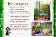 Посадили огород,Посмотрите, что растёт!Будем мы ухаживать,Будем поливать,Будем за росточкамиДружно наблюдать!