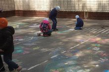 В рамках работы по нравственно-патриотическому воспитанию детей в детском саду прошел день рисунков на асфальте "Дети рисуют Мир!"