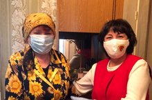 В рамках акции взаимопомощи "Мы Вместе!" директор техникума Р.К. Саубанова побывала в гостях у заслуженного мастера и автора удивительных композиций из кожаной мозаики, резьбы по дереву и ручной художественной вышивки, проработавшей в шашем техникуме.