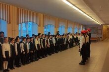 По традиции сегодня в школе прошёл смотр строя и песни, посвящённый Дню защитника Отечества, в котором приняли участие ученики 2-4 классов.