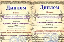Губаева Сюмбель заняла I место в республиканском творческом конкурсе «Культурное наследие моего народа» в номинации «Родные мелодии». (Педагог- Салимуллина Г.В)