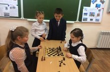 Ученики 1-4 классов в ГПД учатся играть в шахматы.